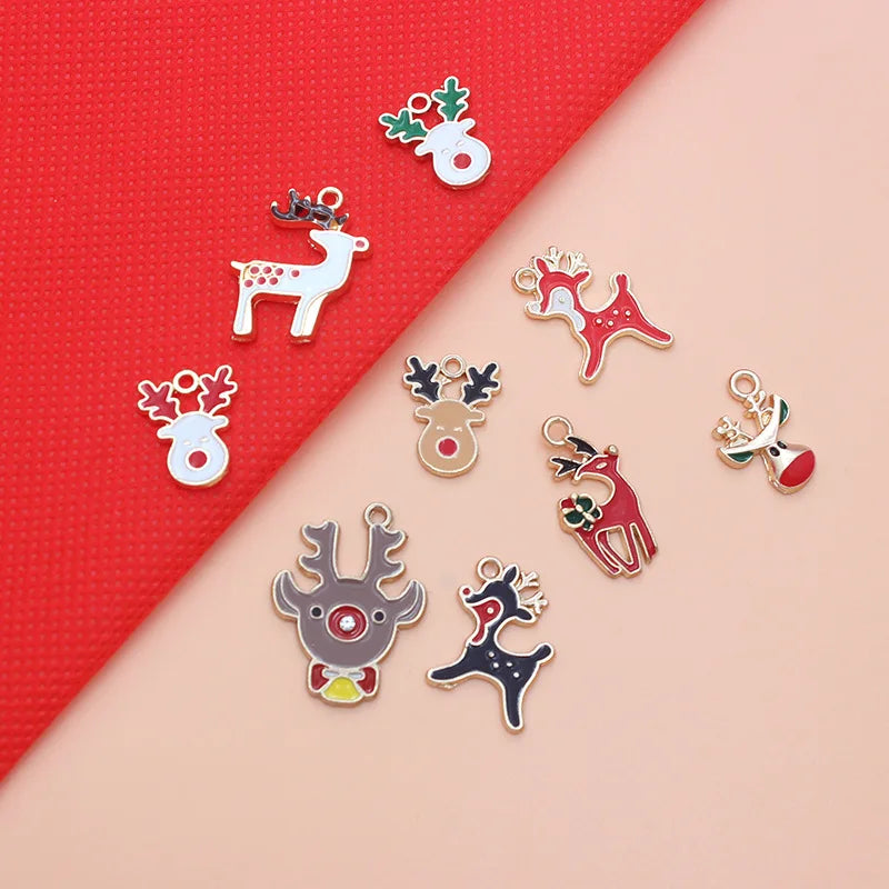 10pcs Christmas Reindeer Enamel Charms DIY Bag Earring Necklace Jewelry Making