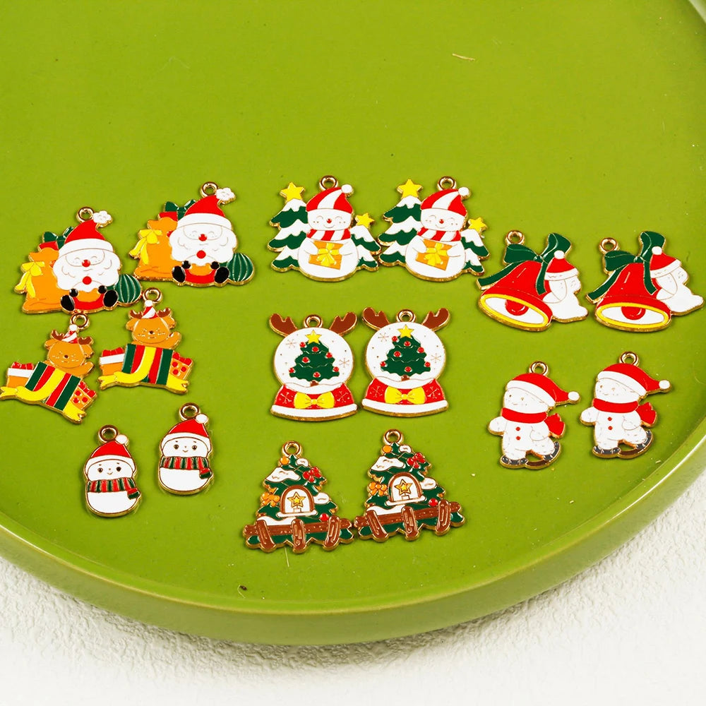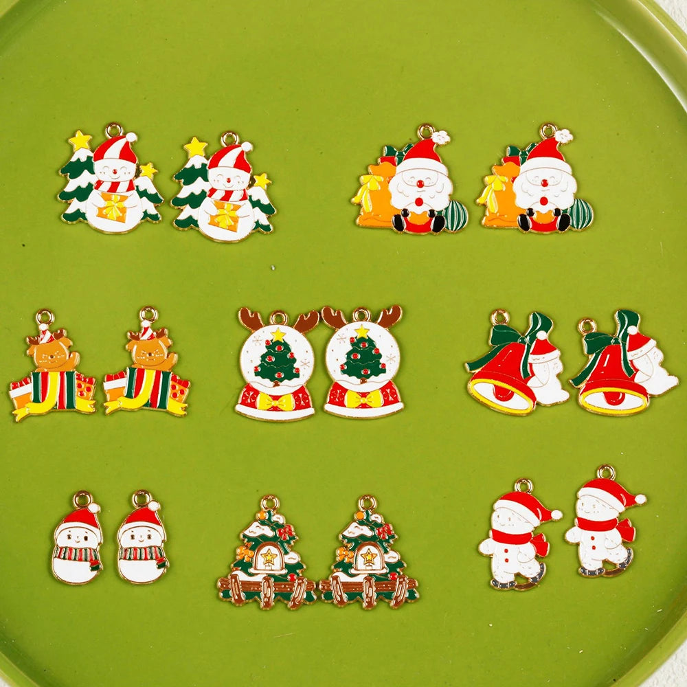 10pcs Christmas Santa Tree Snowman Enamel DIY Charms for Bag Earring Necklace