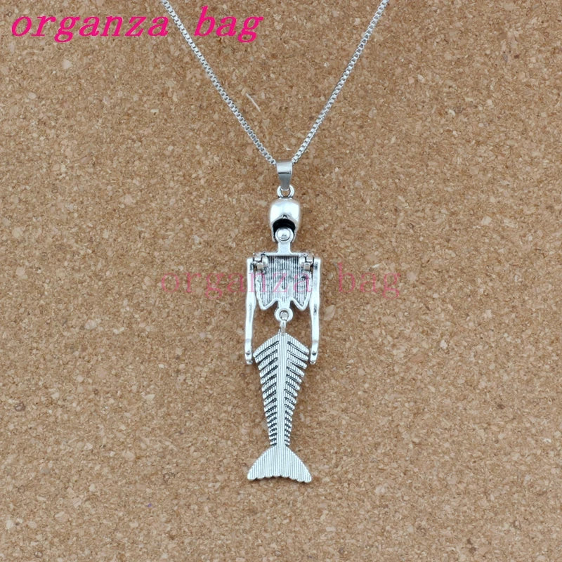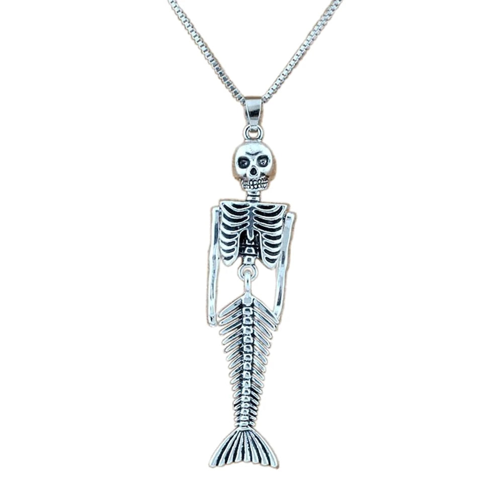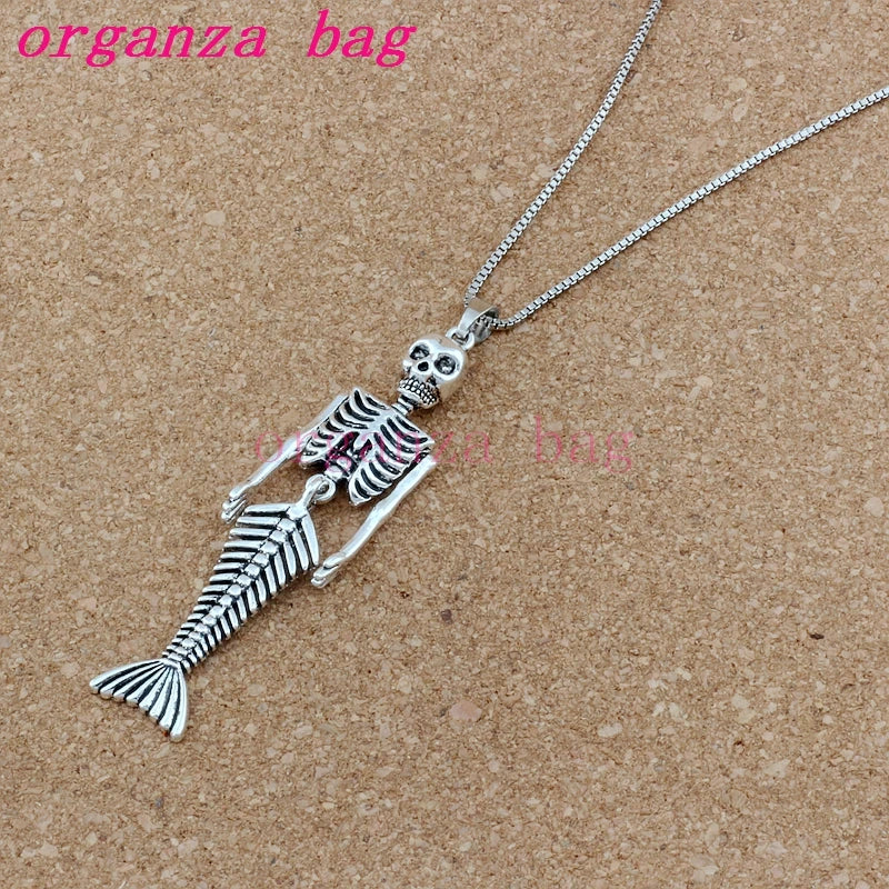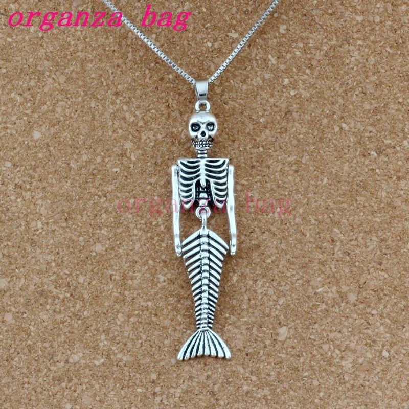 10pcs Mermaid Body Skull Charms Pendant Necklaces with Chains