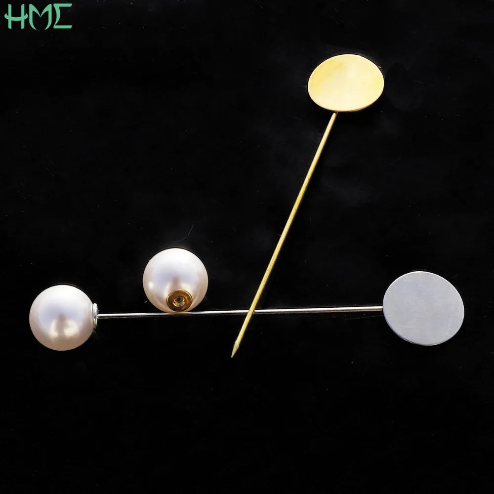 Create your own stylish brooch pins with these 10pcs rhodium pearl alloy long brooch pin bases. Perfect for DIY dress accessories and crafts.