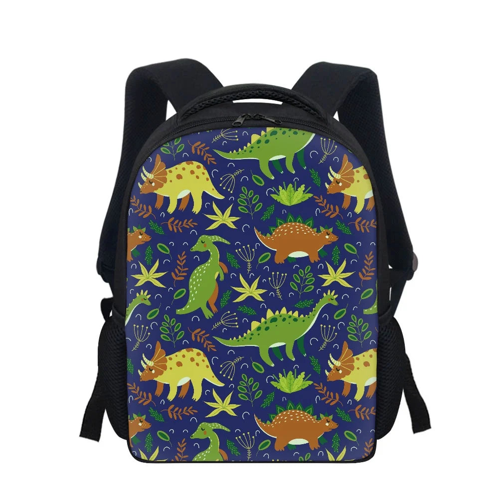 This casual kindergarten book bag features a cute cartoon dinosaur print, perfect for boys. It is small and ideal for students with a fun design.