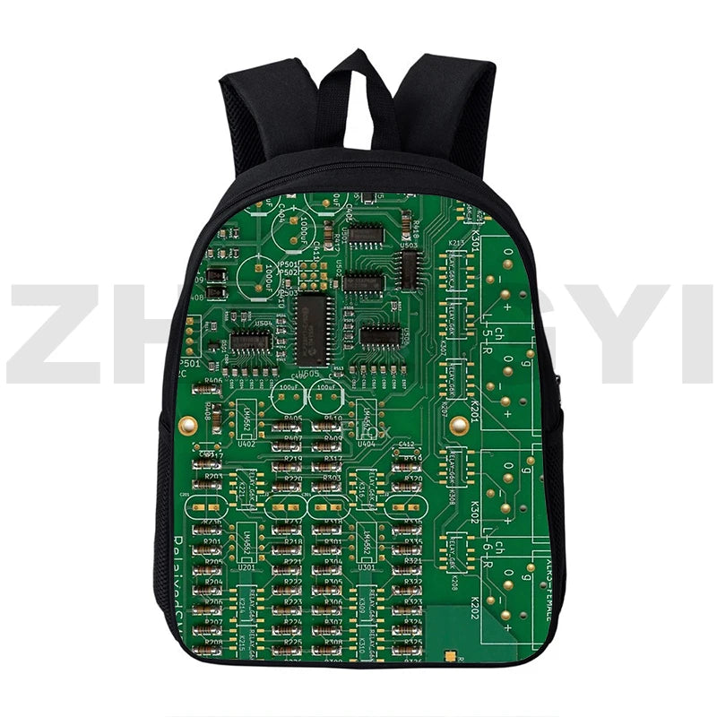 12/16 Inch Circuit Chip Schoolbag 3D Print Electronic Chip Backpack Bag