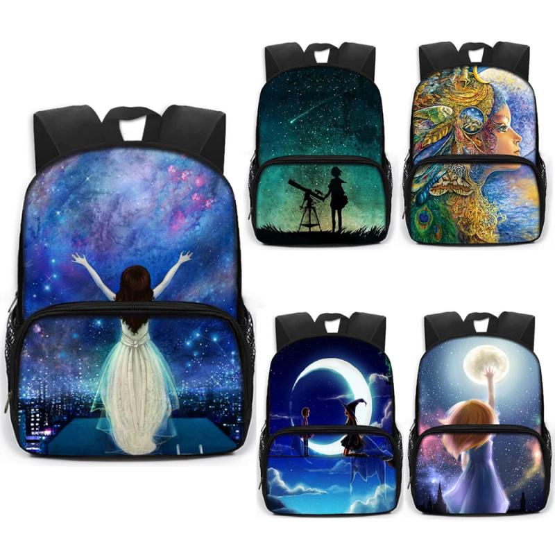 13 Inch Galaxy School Backpack Star Moon Fairy Boys Girls Book Bag