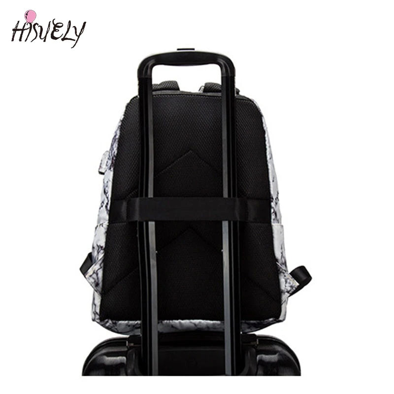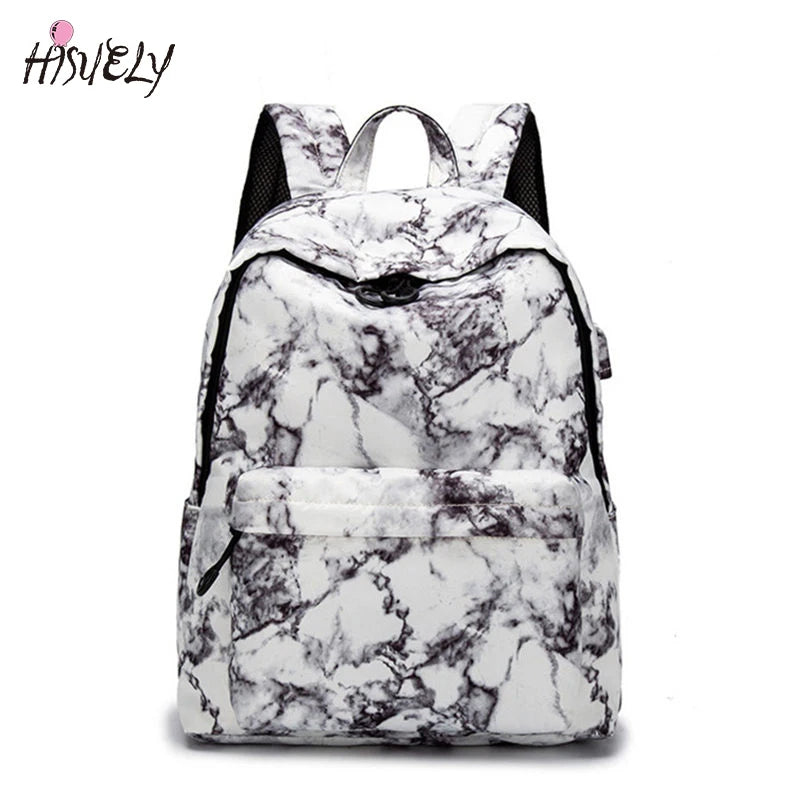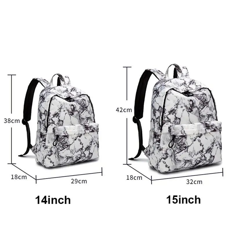 15.6 inch Travel Marble Large Backpack Women USB School Backpack
