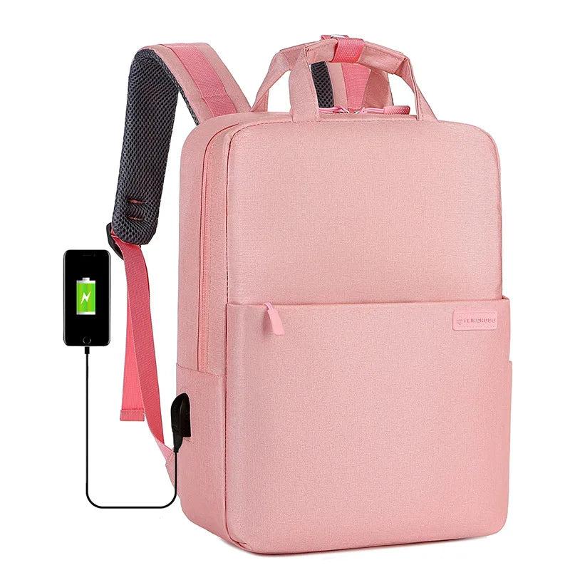 This backpack is designed for both men and women, with a capacity to hold a 15.6-inch laptop. It features a USB charging port for convenient power on-the-go.