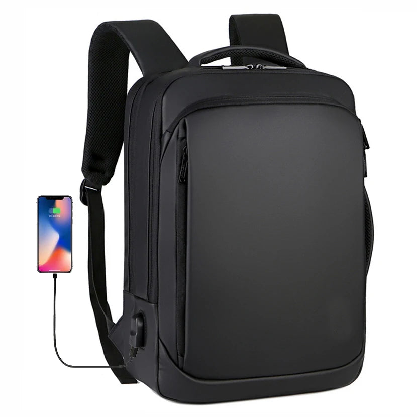 Stay organized and stylish with this 15.6in laptop backpack designed for men. It's a business waterproof bag with USB charging capabilities, perfect for travel.