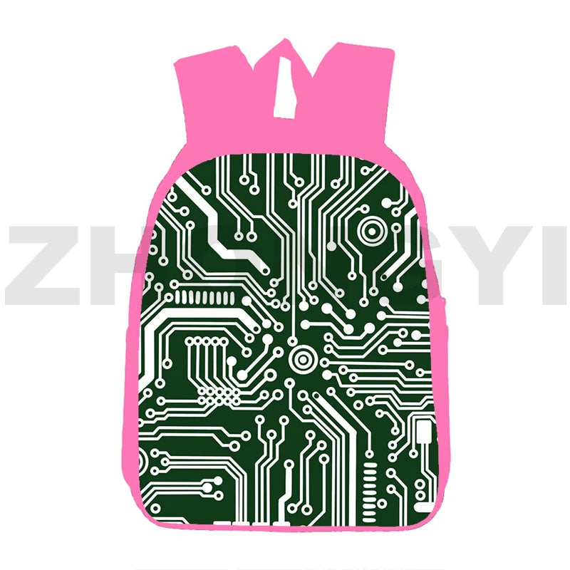 Get ready to travel in style with this 3D print circuit chip backpack featuring a circuit board electronic chip design. Perfect for teenagers and anime lovers, this spacious backpack has a unique and trendy look. It's ideal for carrying your laptop, books, and other essentials.