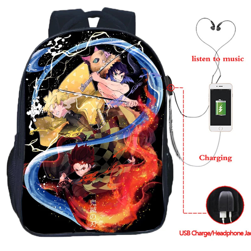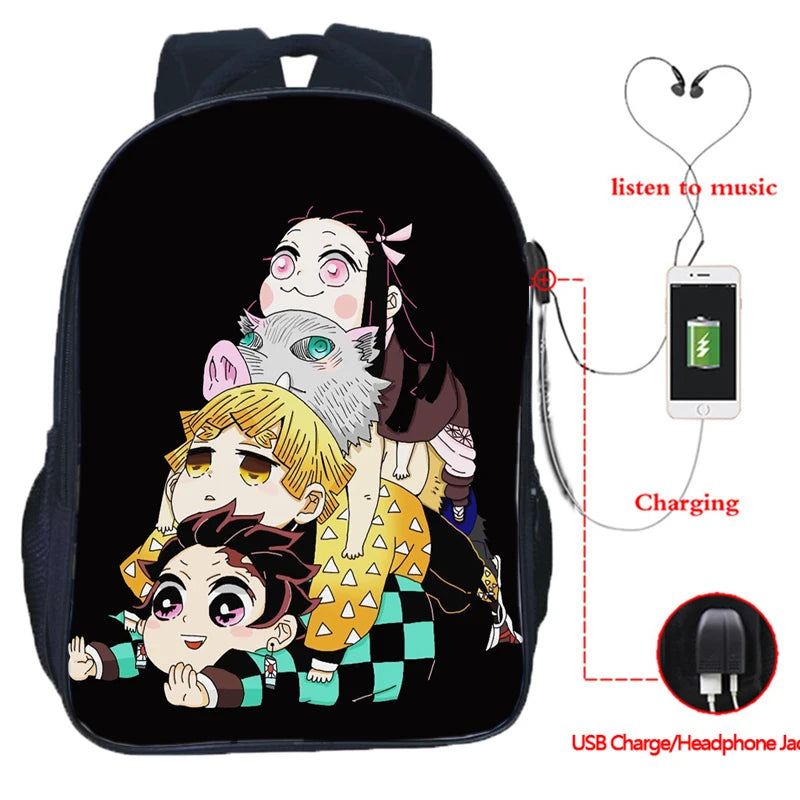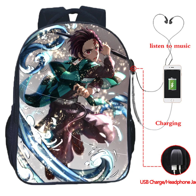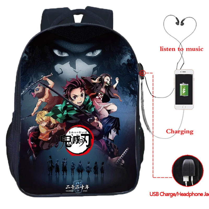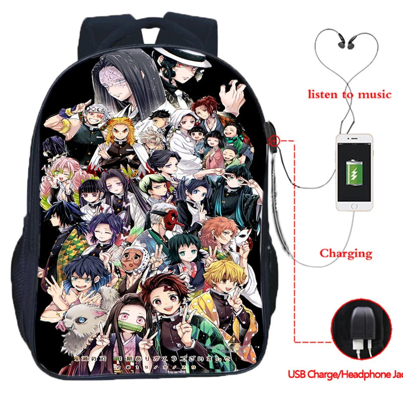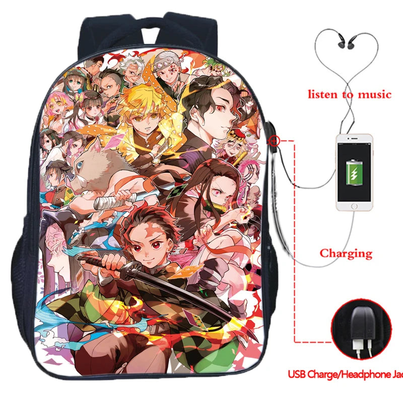 16inch Anime Demon Slayer USB Backpack Kimetsu No Yaiba School Bag