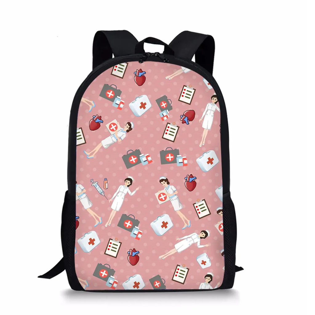 17 Inch Nurse Pattern Women School Backpack for Teen Girls Book Bag Rucksack