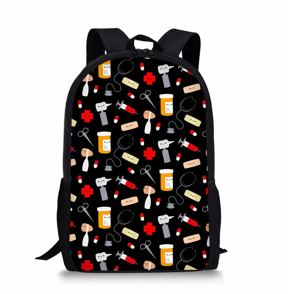 - 17-inch school backpack with nurse pattern design