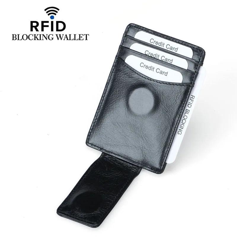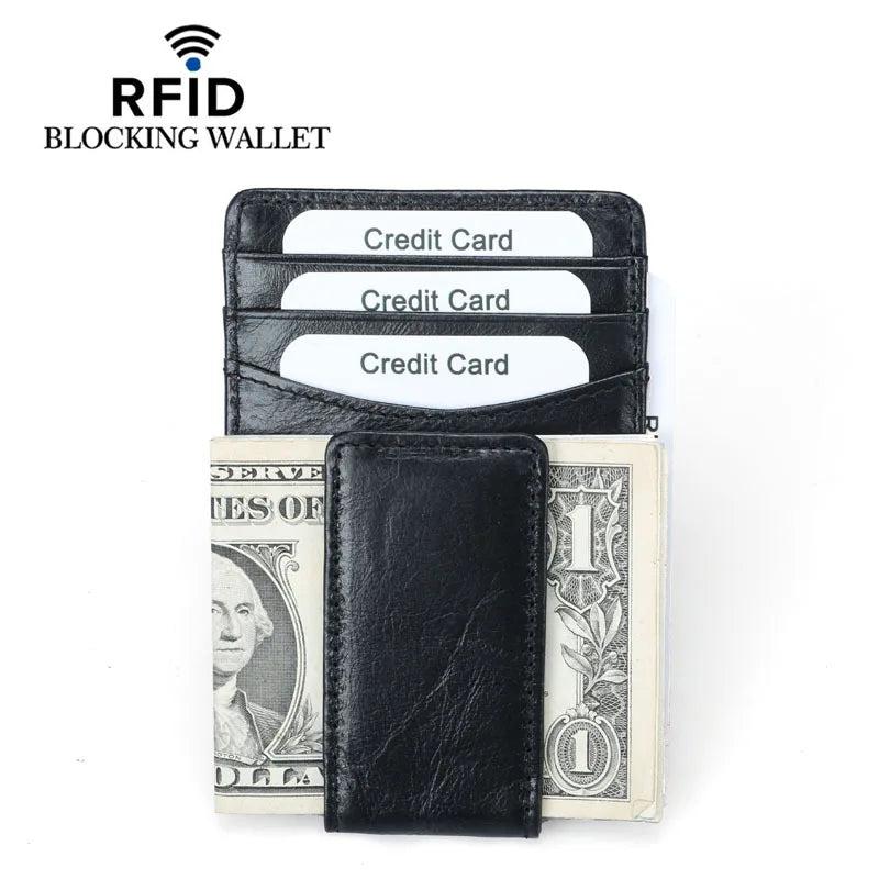 1st Layer Cowhide Credit Card Wallet Oil Wax Leather RFID Dollar Clip