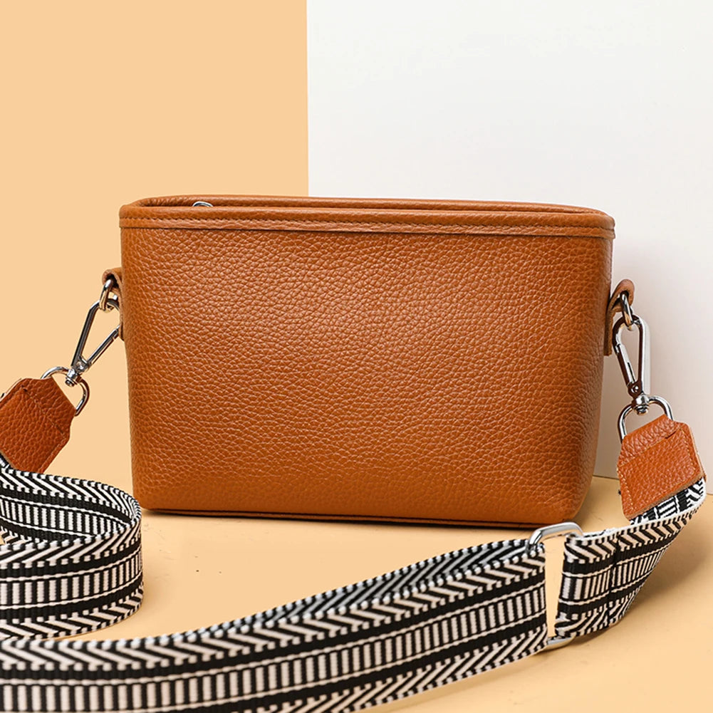 1st Layer Cowhide Women's Messenger Bag Wide Strap Classic Purses
