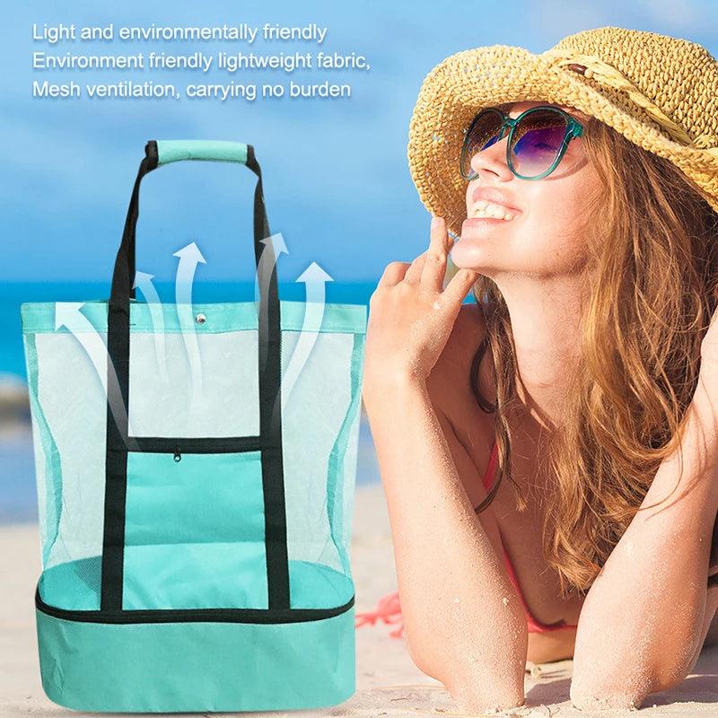 2 in 1 Cooler Picnic Bag Beach Bag Oversized Lightweight Mesh Beach Tote Bag