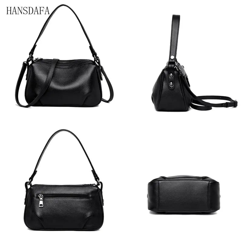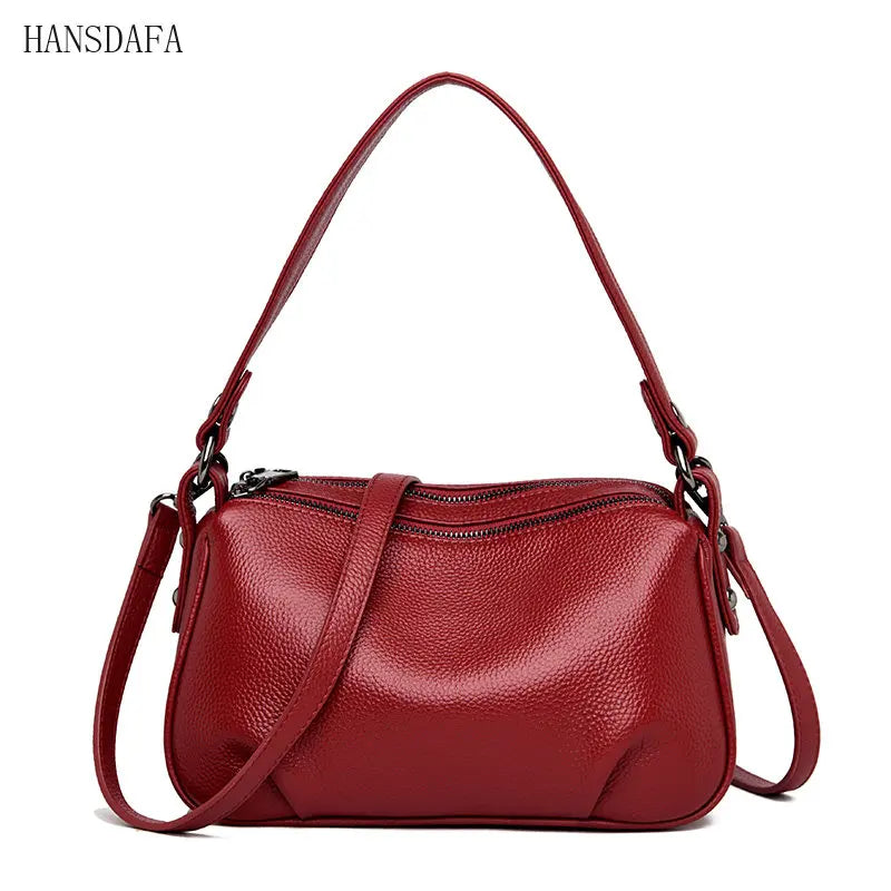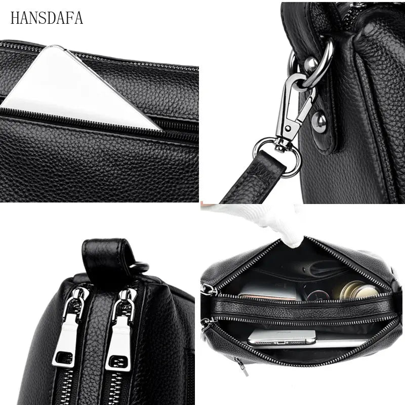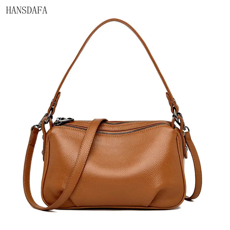 2 Layer Leather Shoulder Crossbody Bag for Women