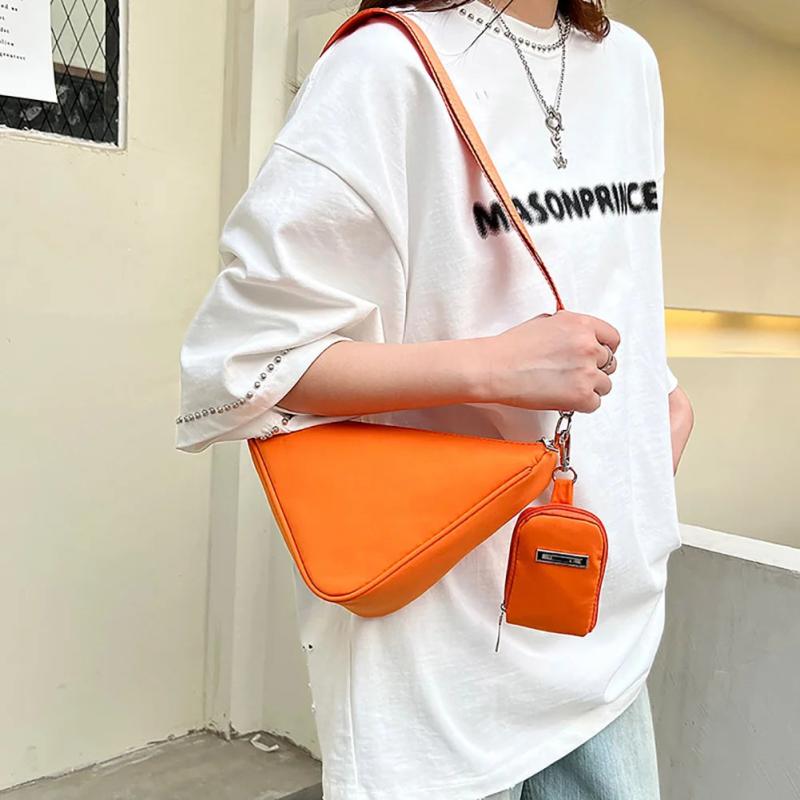2 Pcs Women's Crossbody Bags Nylon Handbag Triangle Metal Label Small Shoulder B