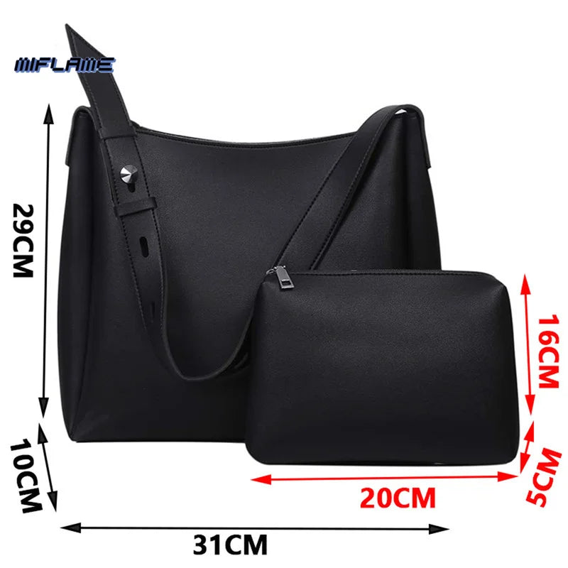 2 Sets Casual Tote Bags PU Leather Shoulder Bags for Women Female Travel Bag