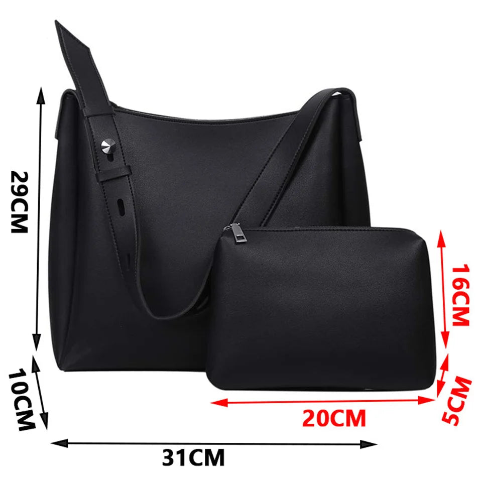 2 Sets Casual Totes Bag PU Leather Shoulder Bags for Women Female Travel Bag