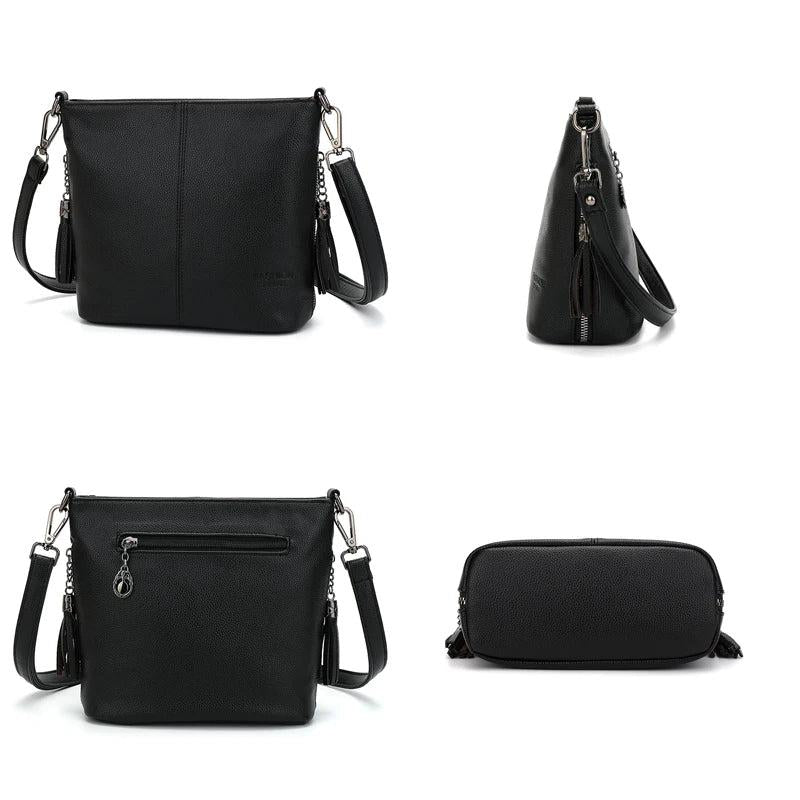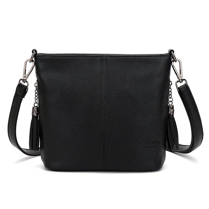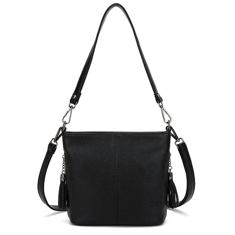 2 Straps PU Leather Shoulder Bags for Women Bucket Tassel Soild Women Messenger