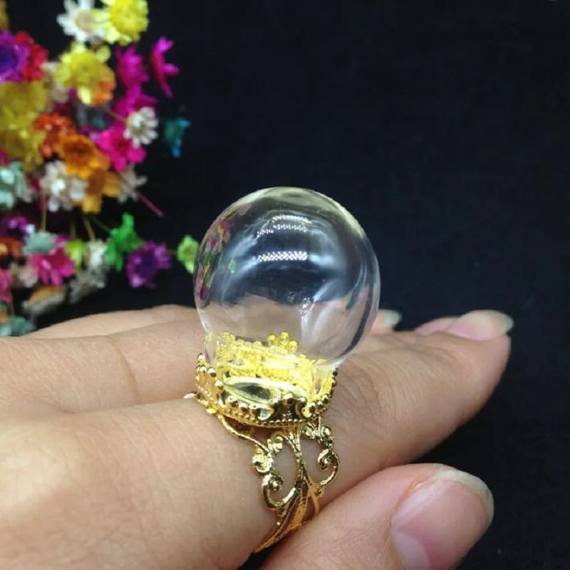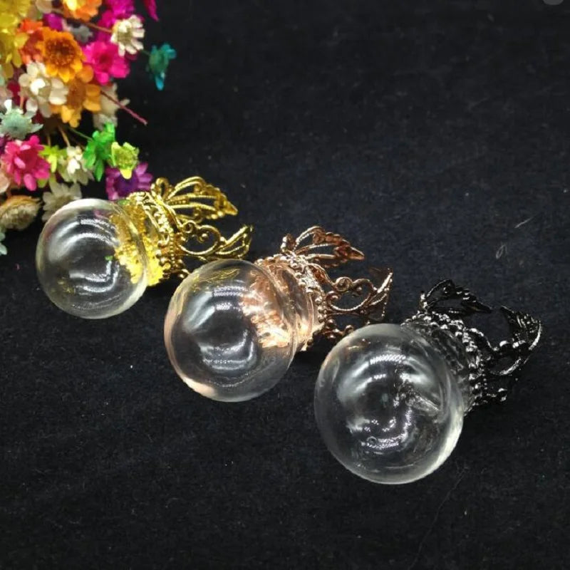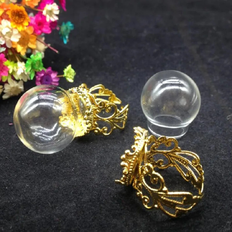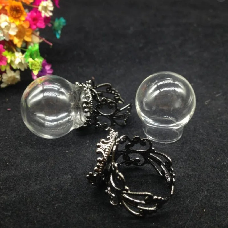 Create your own unique jewelry with this set of 20 glass globe ring flower tray findings. Perfect for DIY projects, these glass vial rings come with a glass cover for a stylish finish.