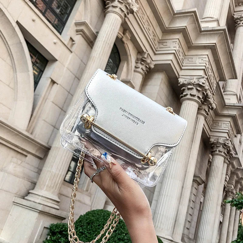 2020Women Small Square Shoulder Bag Clear Transparent PU Composite