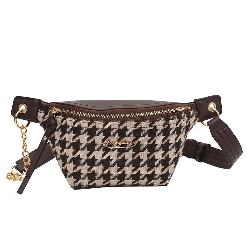 2021 Houndstooth Small Waist Pack Women Chest Bag Phone Purse