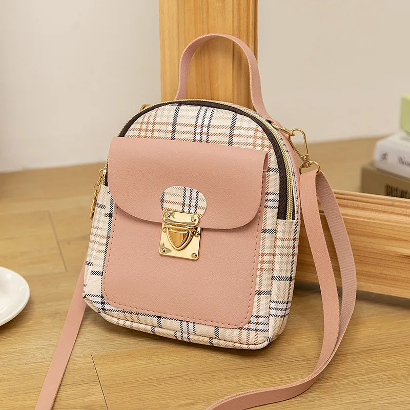Stay stylish with this multi-functional small backpack for women. Featuring a plaid pattern and contrast design, this backpack is perfect for school or daily use.