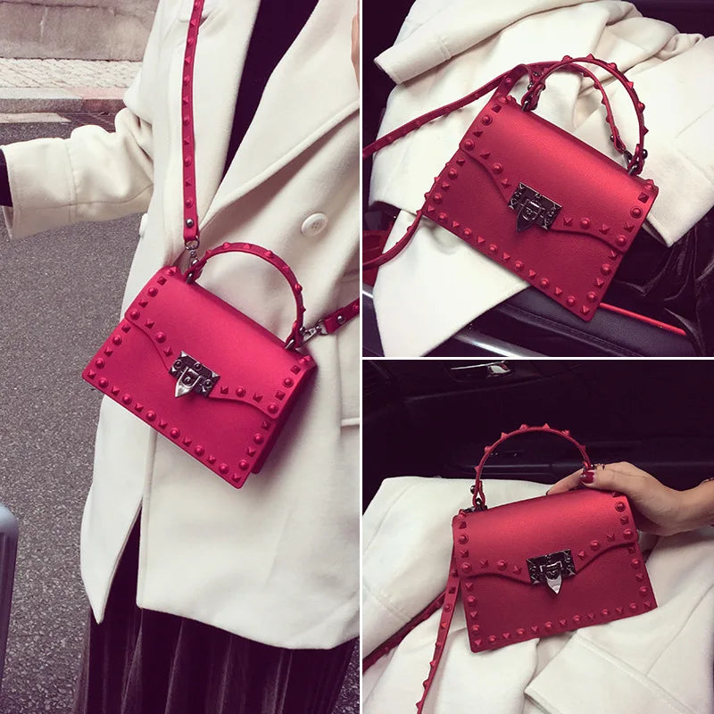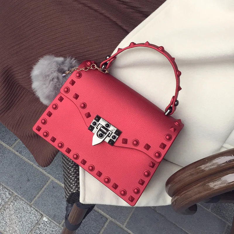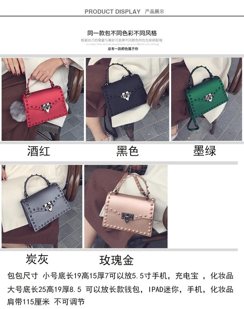 2022 Women's Bag PU Leather Rivets Handbag Shoulder Bag