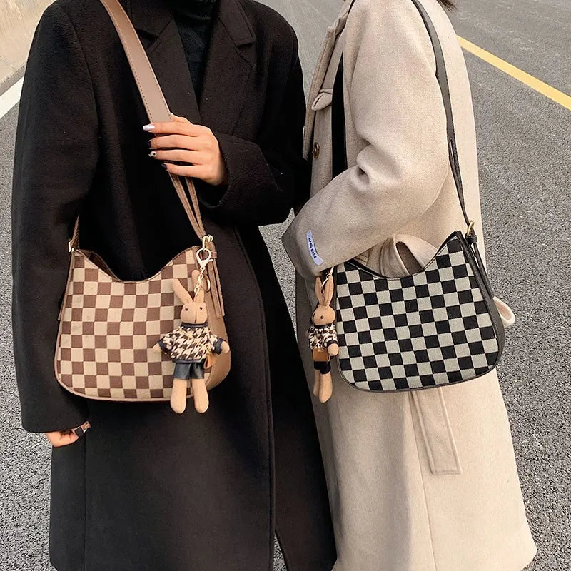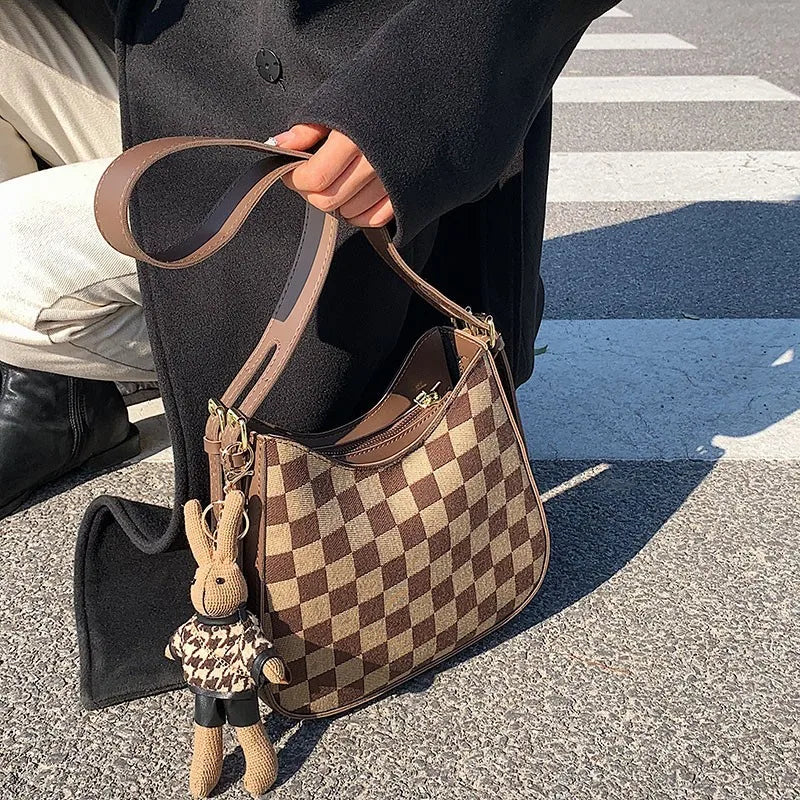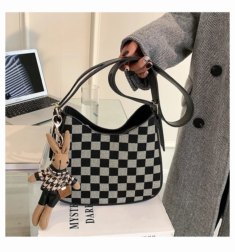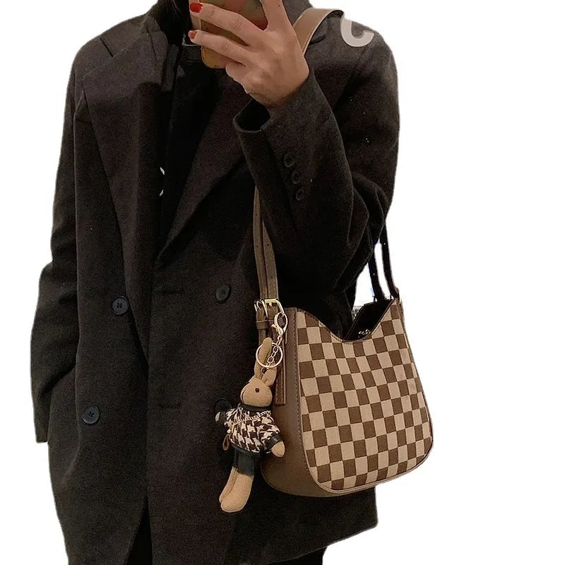 2023 Fashion Ladies Shoulder Bag Retro Plaid Saddle Bag