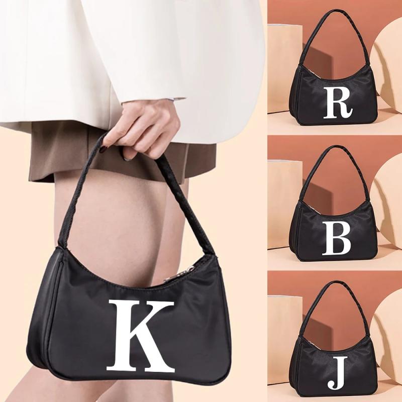 This stylish shoulder bag features a 26 letter printing design and multiple compartments to organize your essentials. It can also be used as a wallet or clutch.