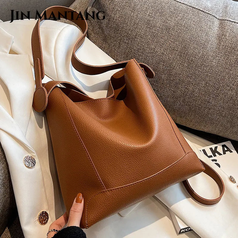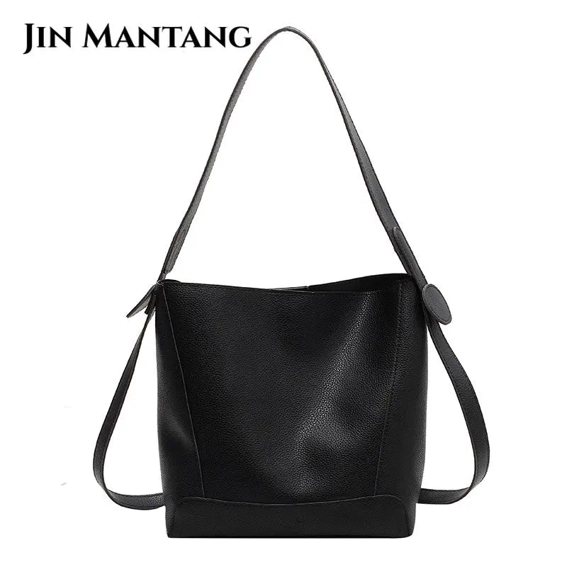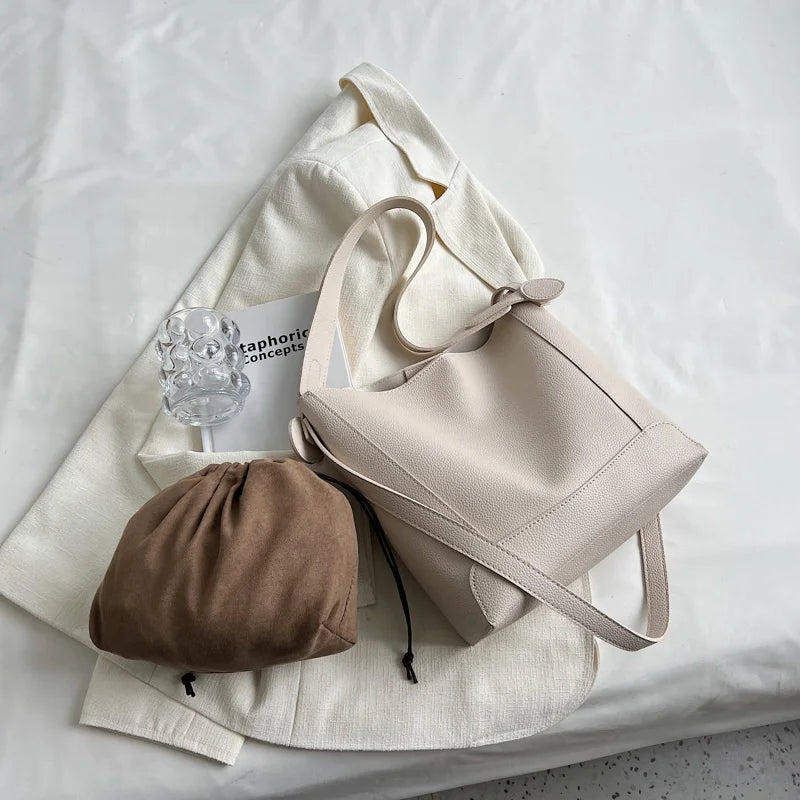 2pc Set PU Leather Women's Handbags Casual Ladies Tote Female Bucket Bag