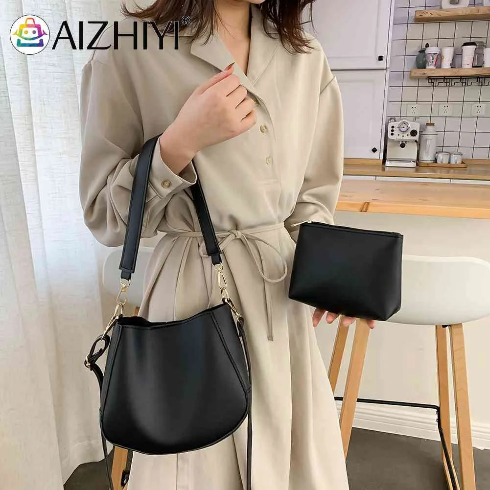 2pcs Crossbody Bag Solid Women Shoulder Bag Casual High PU Leather Messenger Bag
