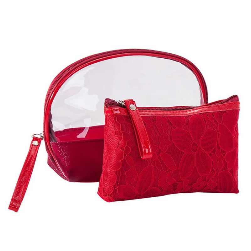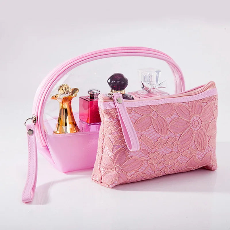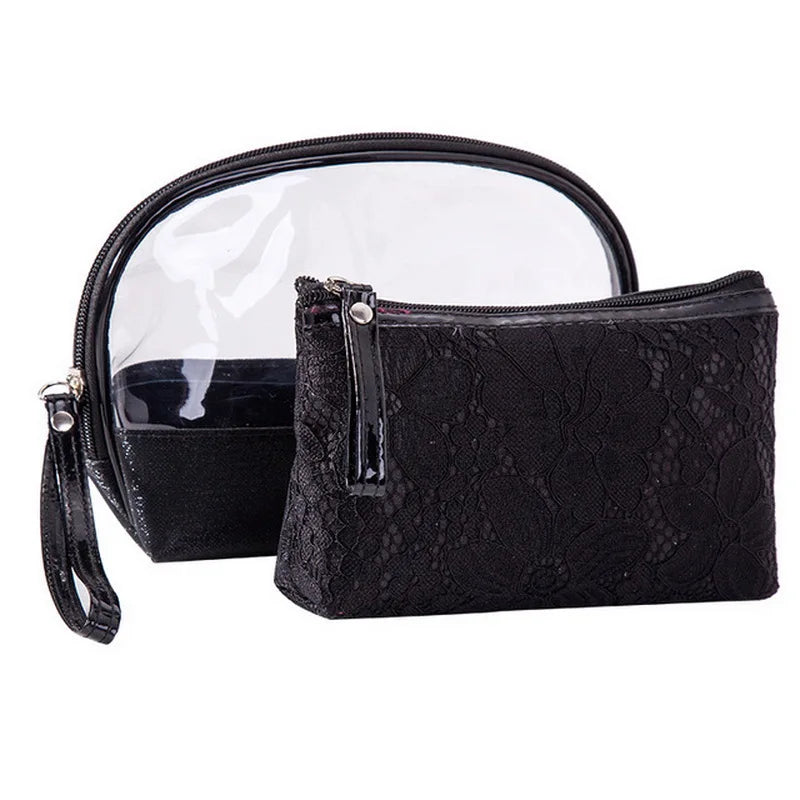 2PCS Lace Cosmetic Bag Transparent PVC Travel Toiletry Bag Zipper Purse BB68