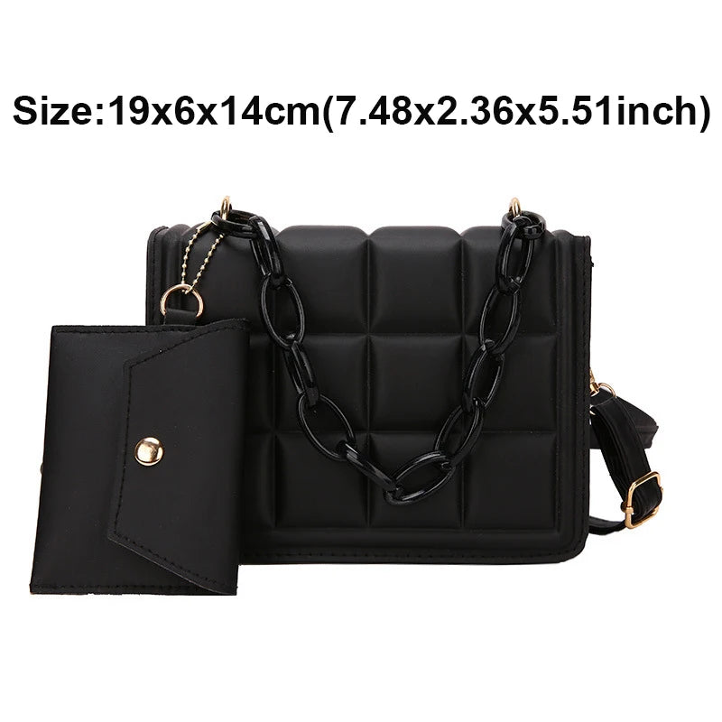 2PCS Women Handbag Diamond Lattice Pattern Composite Bags PU Leather