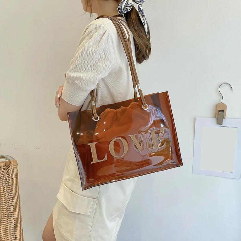 Stay stylish this summer with these trendy composite bags that feature a transparent design, canvas material, drawstring closure, and spacious interior. Perfect for daily use or special occasions.