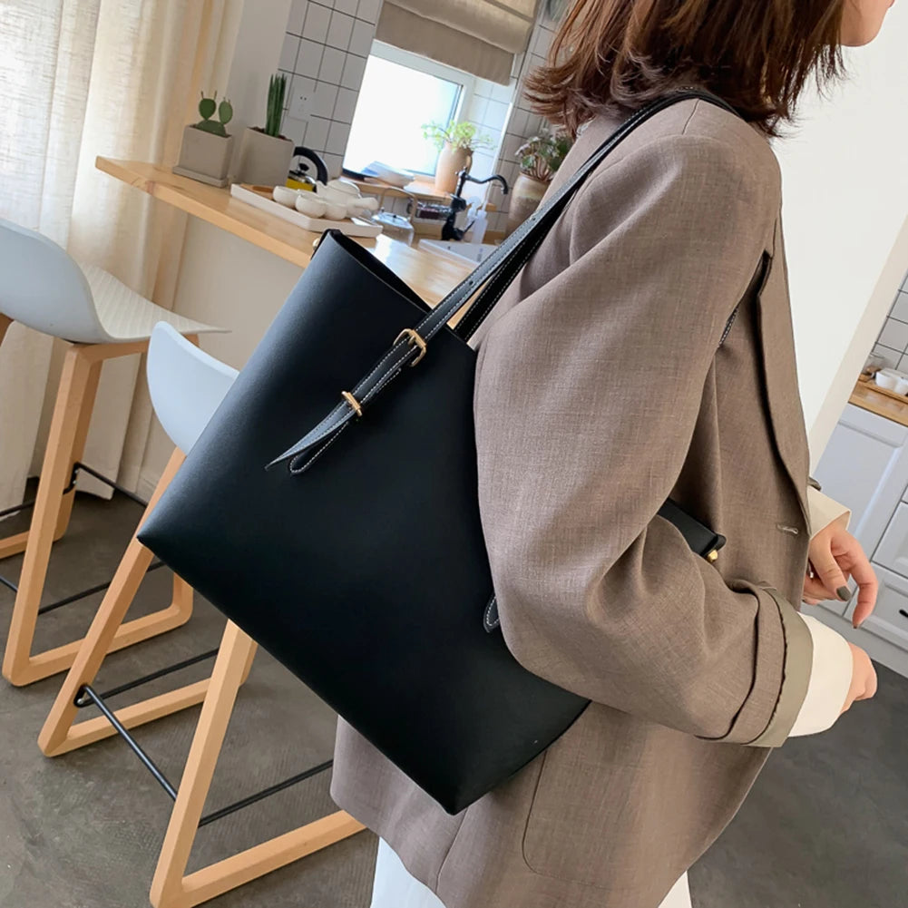2pcs/Set PU Leather Handbag Women Casual Large Capacity Shoulder Tote Bags