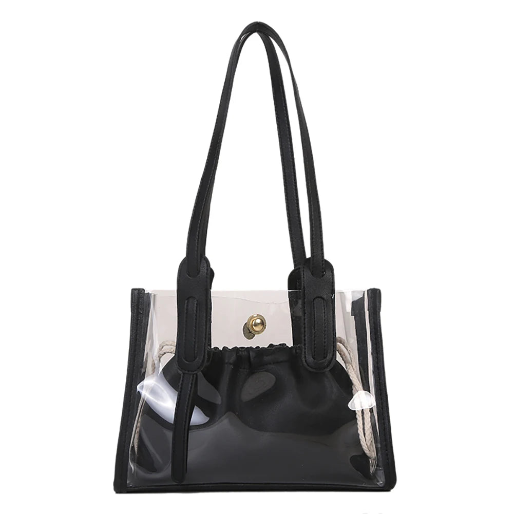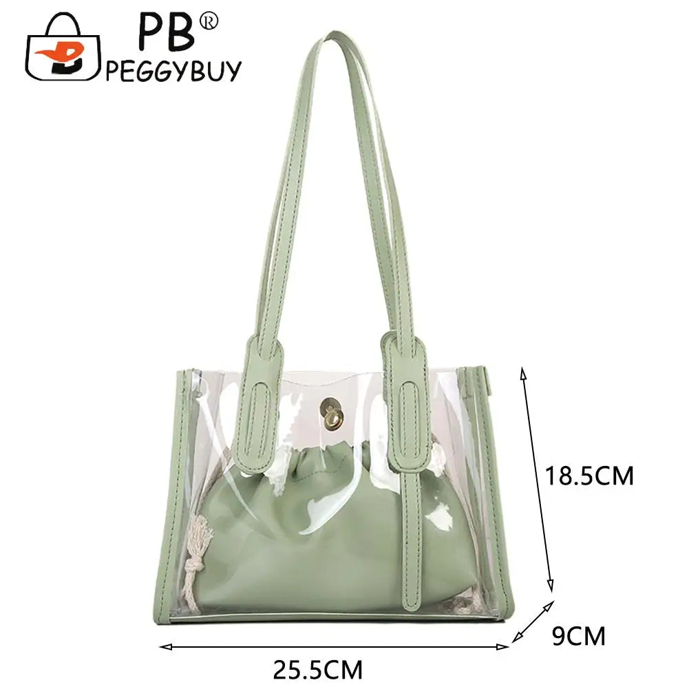 2pcs/set Transparent PVC Handbag with PU Jelly Totes Women Shoulder Bags