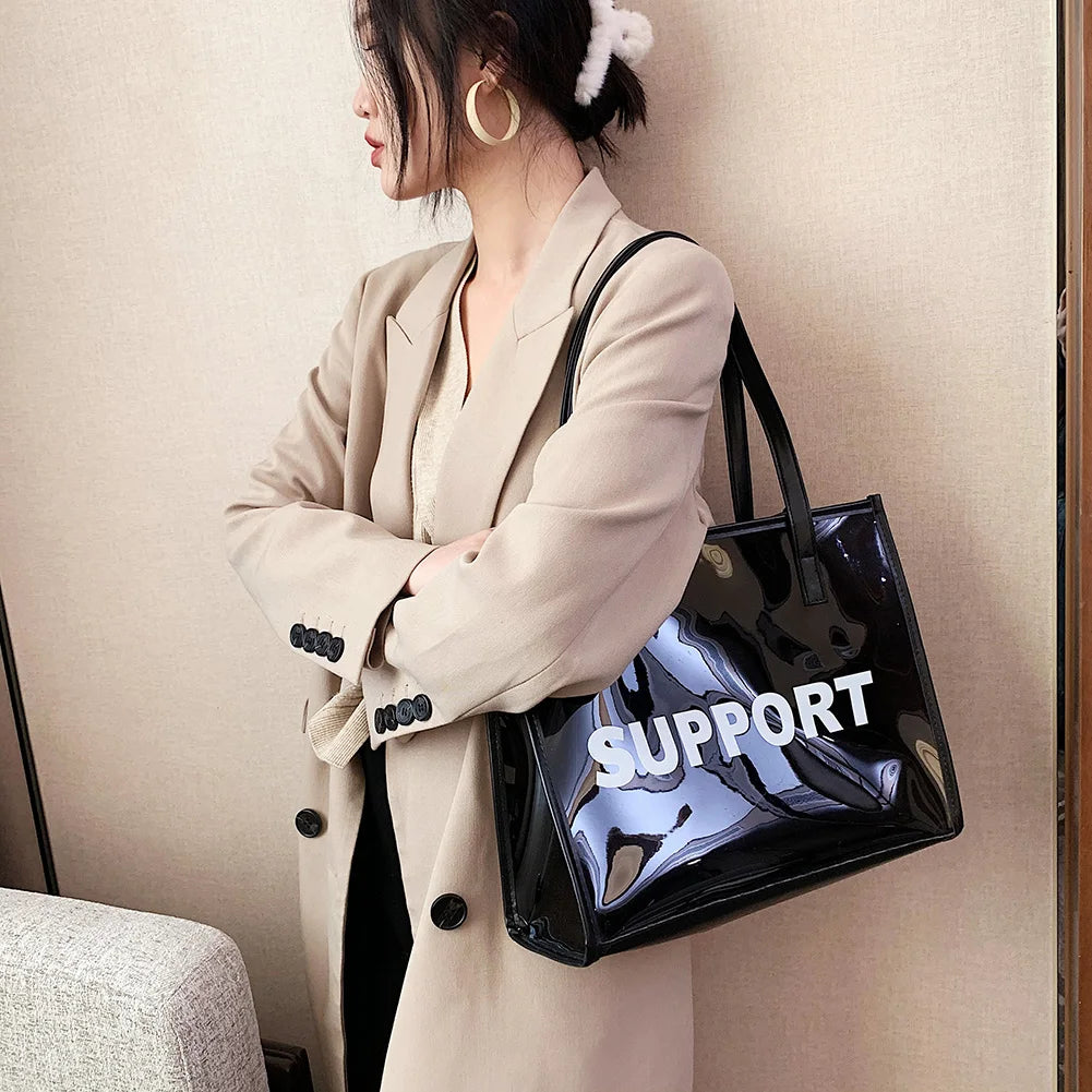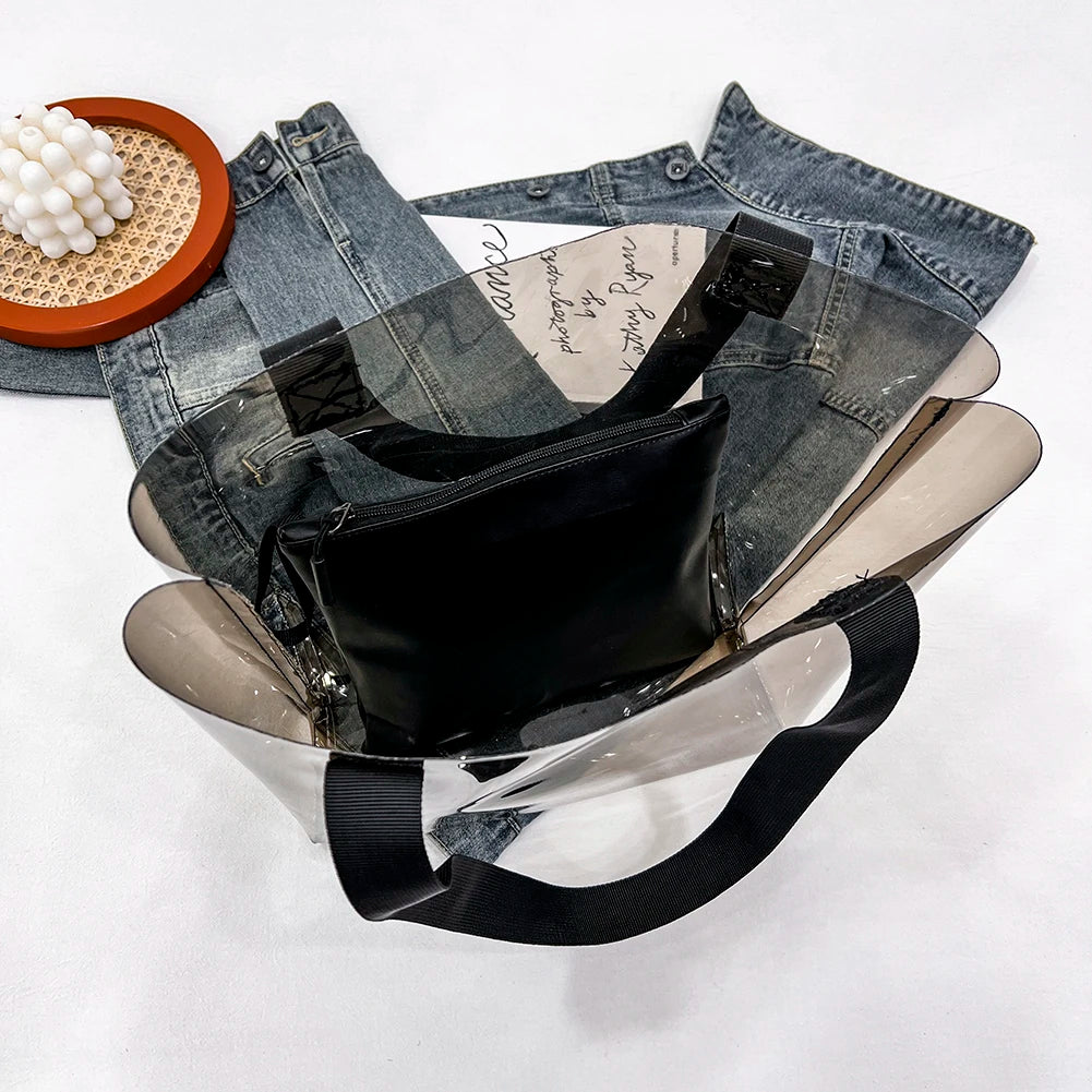 2pcs/set Women Shoulder Bags Transparent PVC Handbags Composite Bags Totes