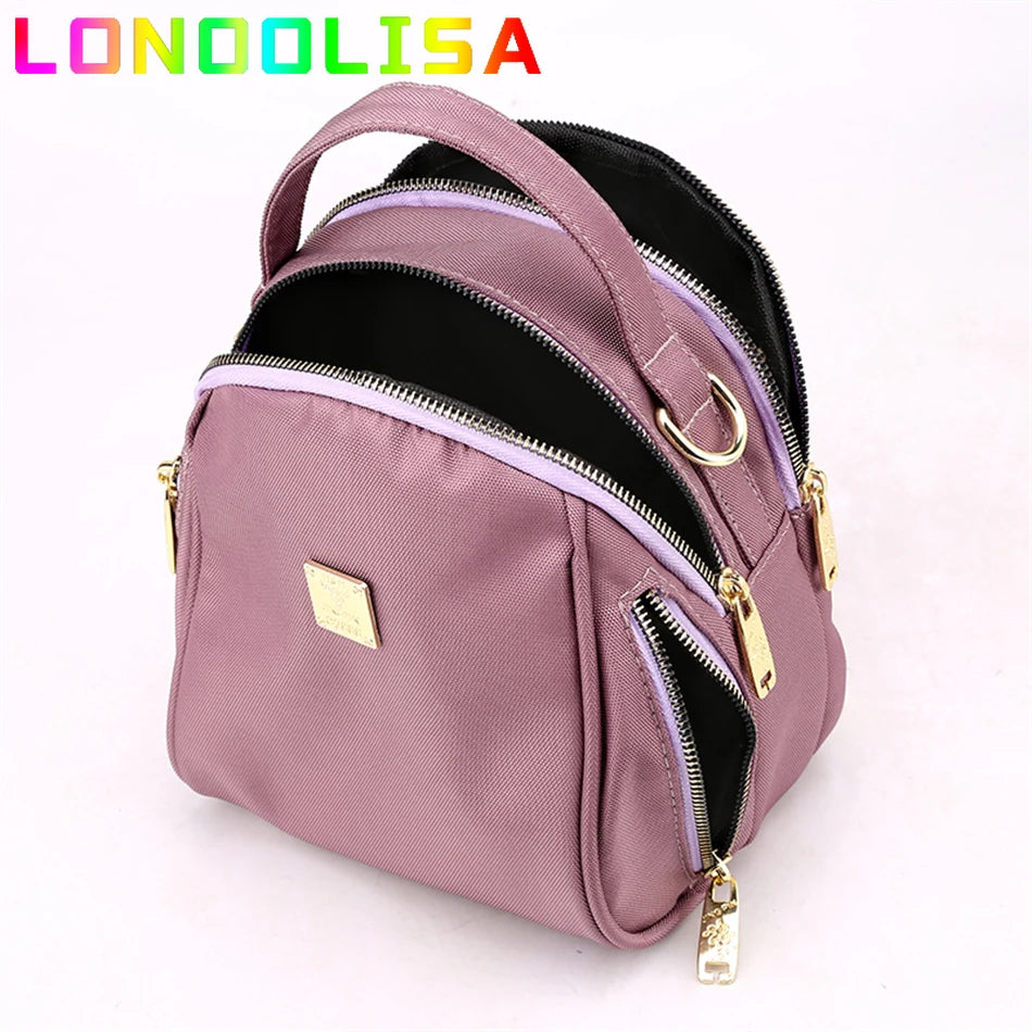 Stay organized with this versatile backpack that can be worn as a backpack, shoulder bag, or crossbody purse. Made of durable nylon, ideal for travel and everyday use.