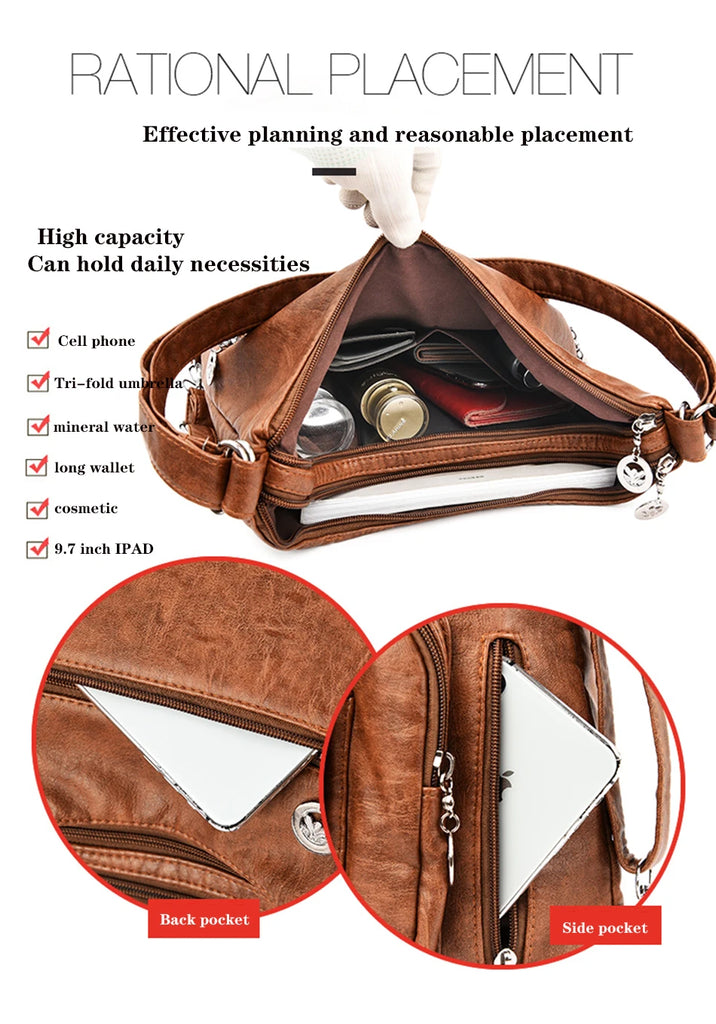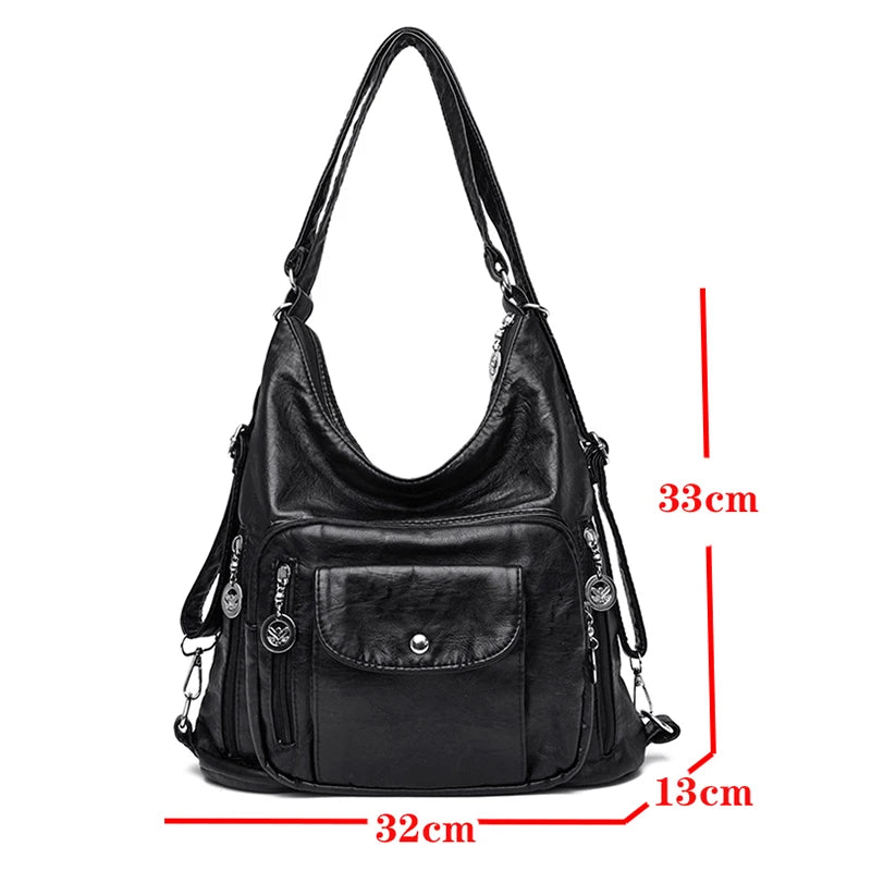 This versatile bag can be used as a backpack, tote, or shoulder bag. It is made of high-quality PU leather and has a retro vintage design, perfect for casual outings.