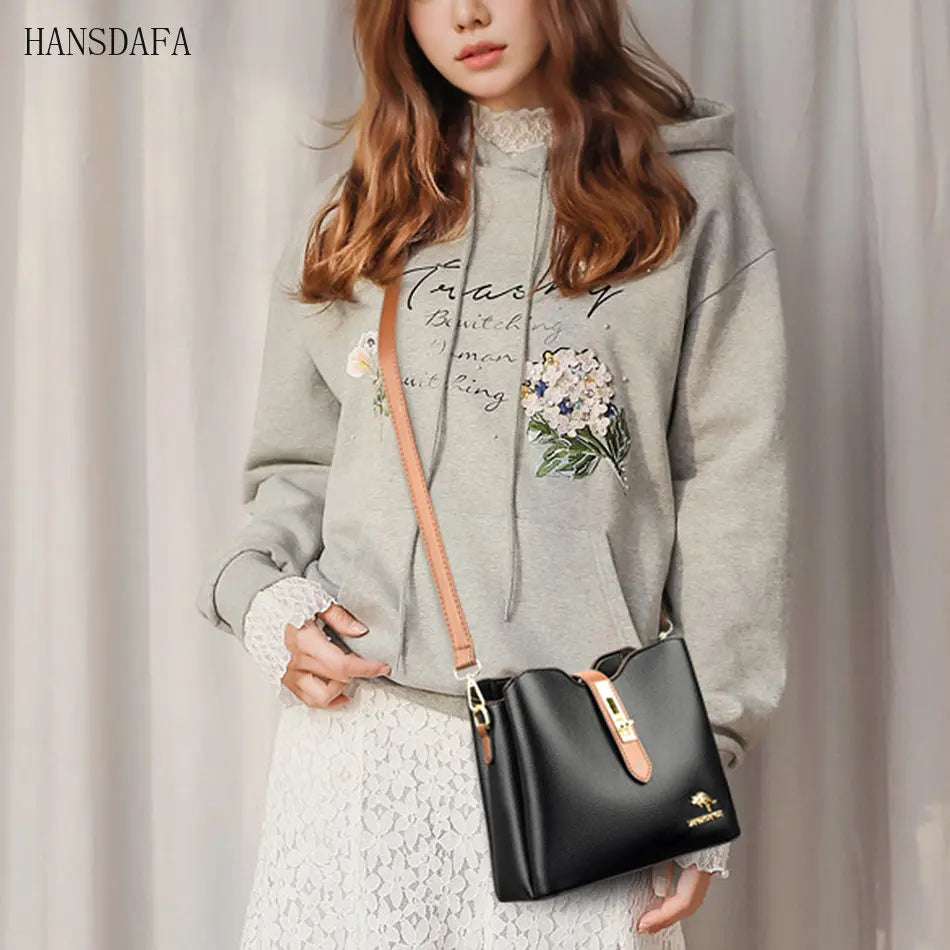 3-Layer Bucket Crossbody Bag Small Shoulder Messenger Purse Handbag