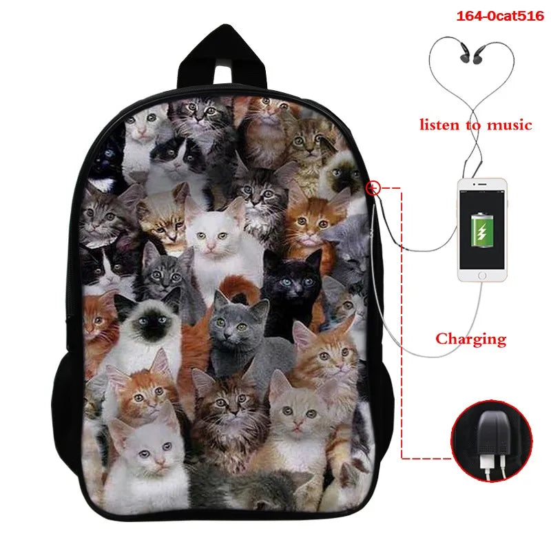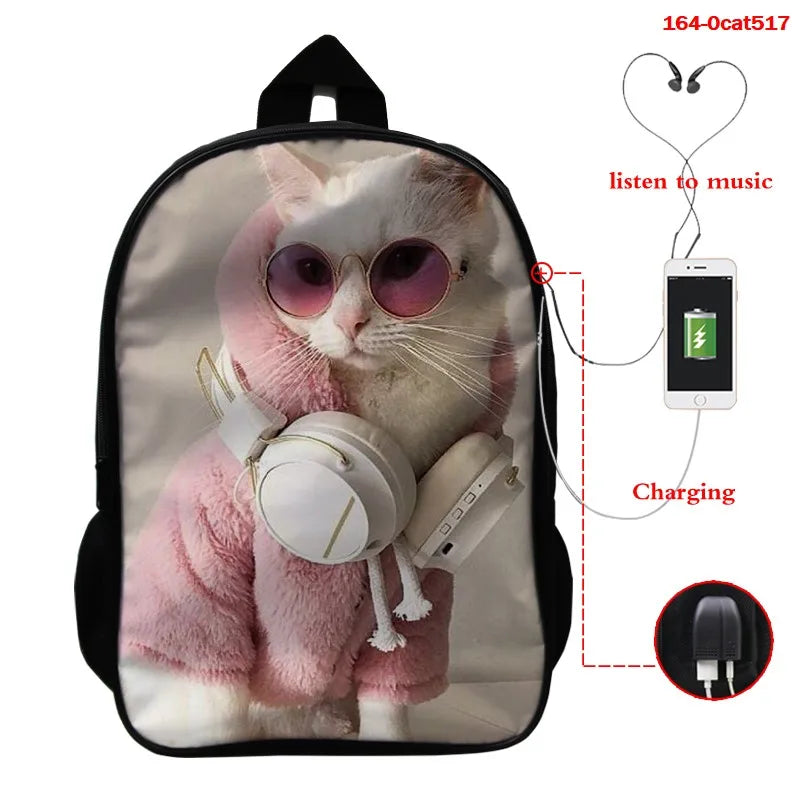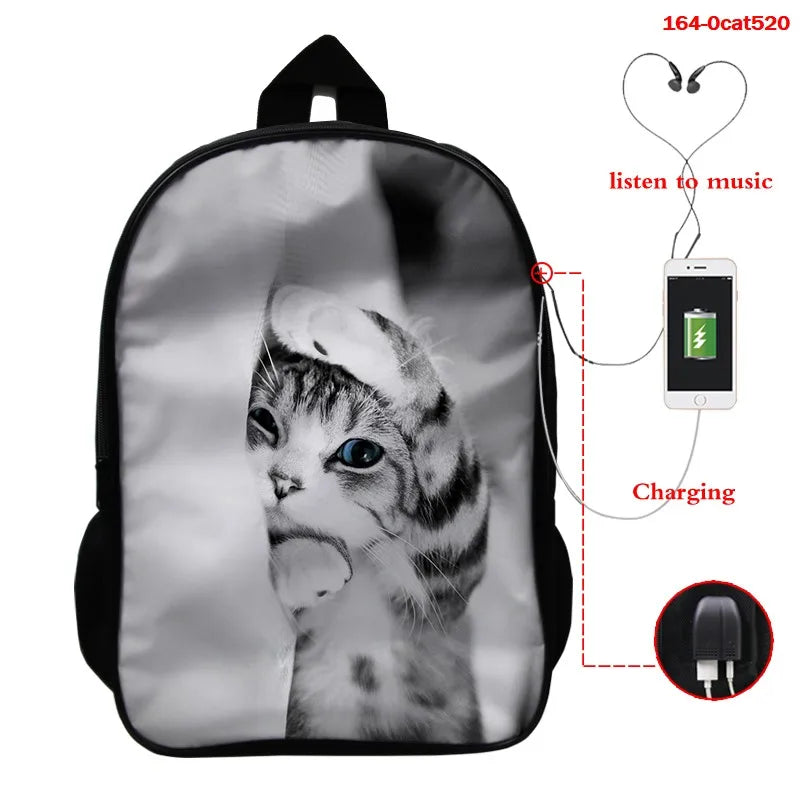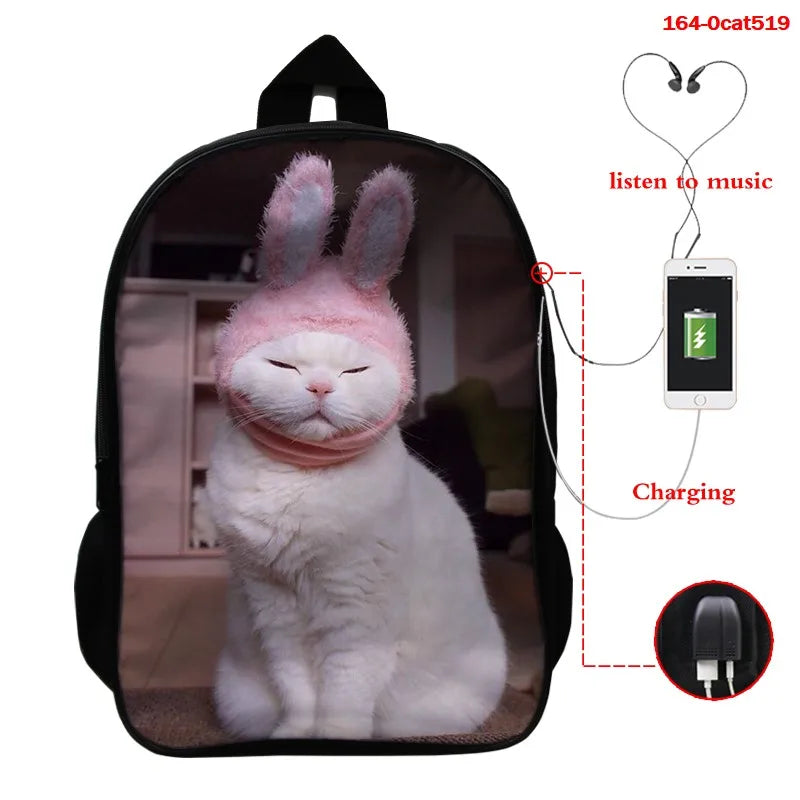 3D Animal Cat School Bag for Girls Women Casual Bookbag Mochila Feminina