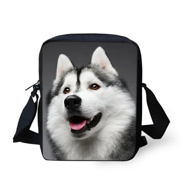 This messenger bag features a 3D design of wolves, lions, and leopards. Perfect for women, small children, and kids.