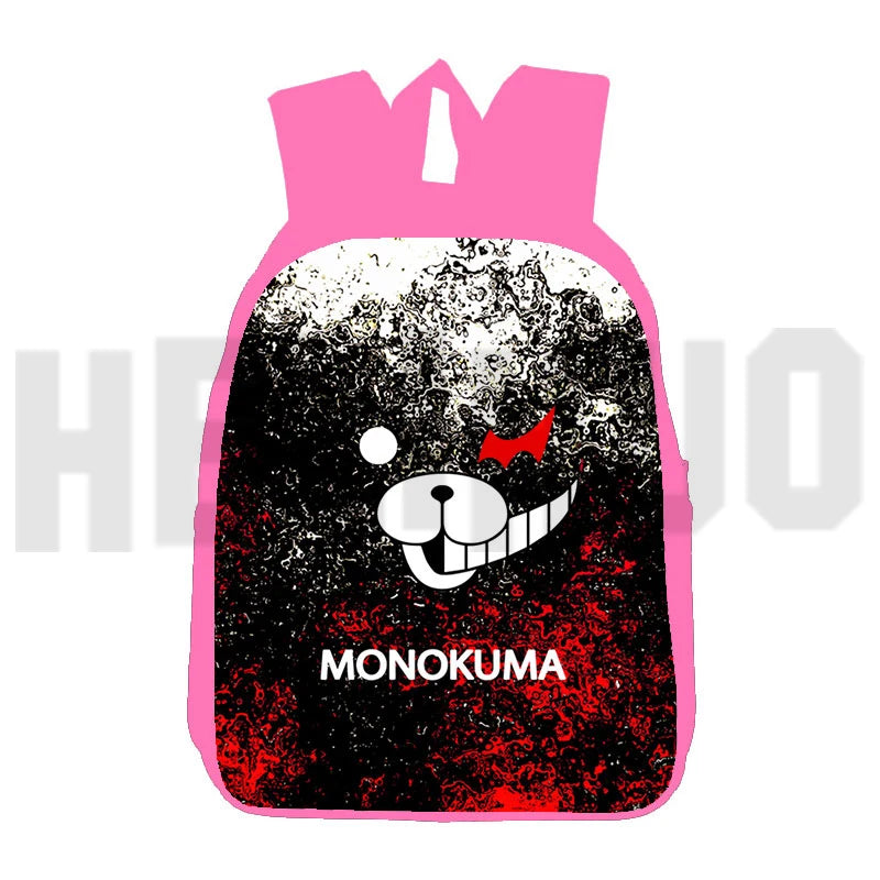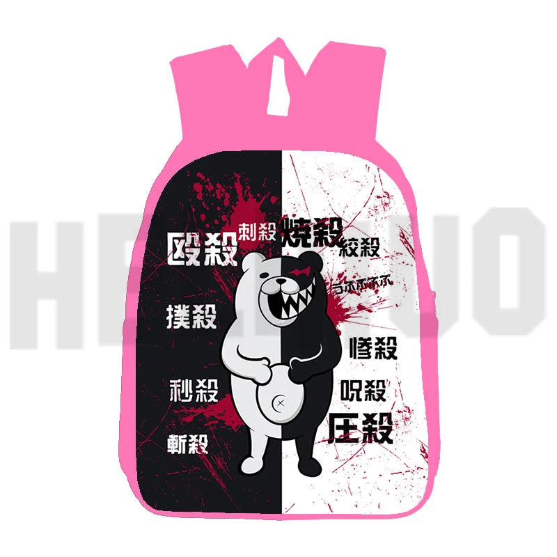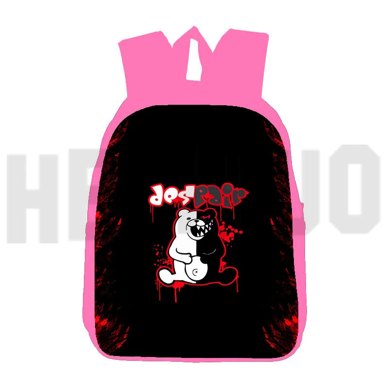 Get ready for school with this cute pink Danganronpa backpack featuring Monokuma. Perfect for teenagers, girls, and women.