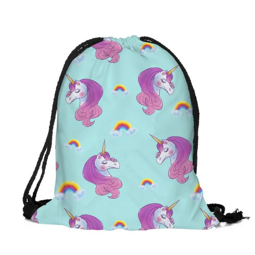 Get this adorable 3D digital print unicorn backpack featuring a thin monolayer design with a rope strap opening. Perfect for carrying small items with style.