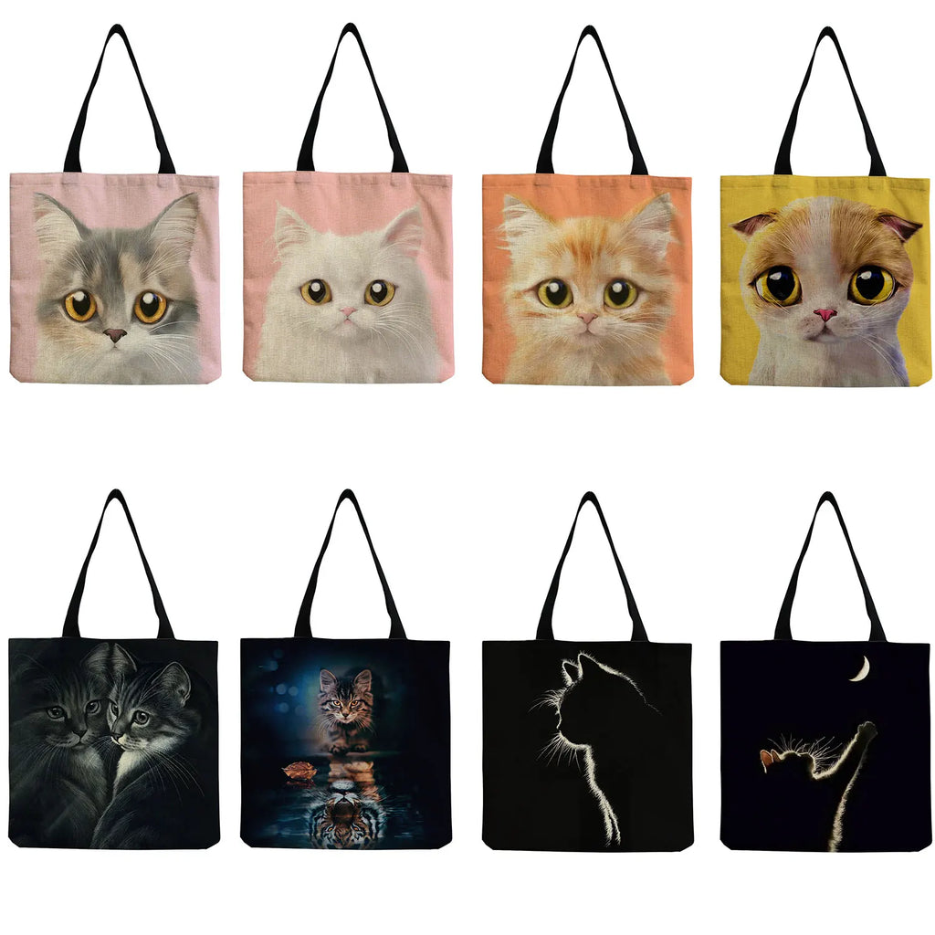 3D Cats Print Beach Bag Shoulder Tote Eco-Friendly Shopping Bag
