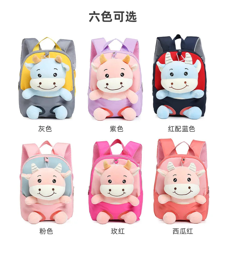 3D Cattle Plush Toy Kids Backpack, School Bag for Age 4-8