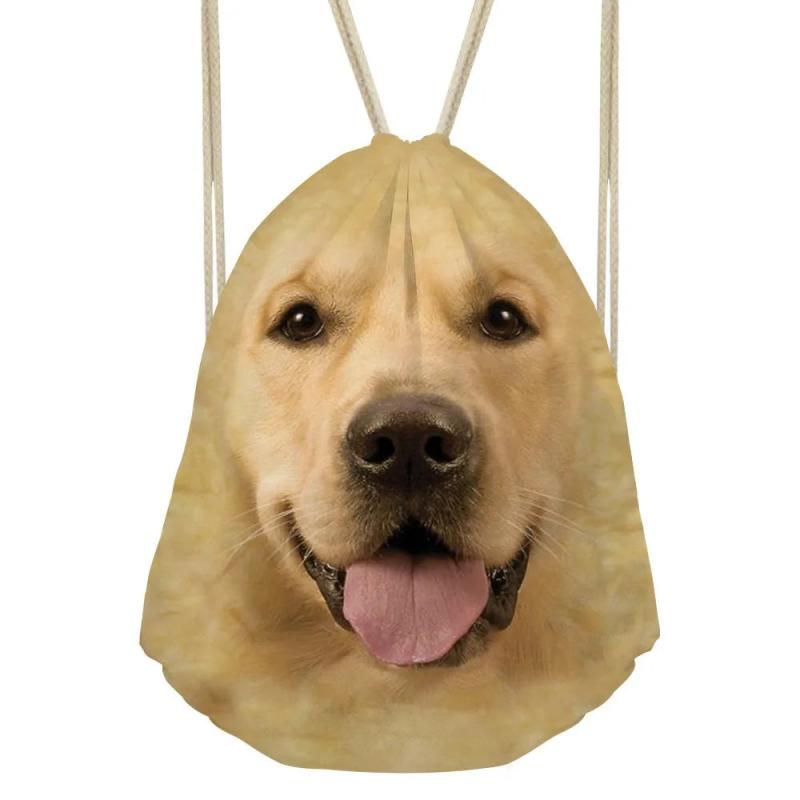 3D Dog Print Mini Backpack Drawstring Bag Women Men Travel Softback