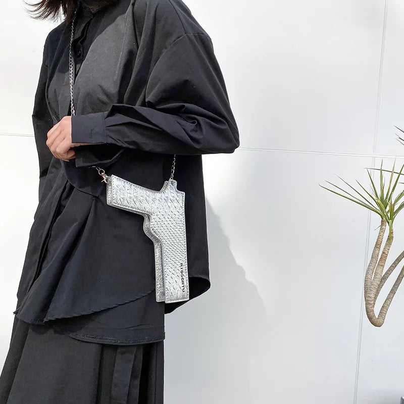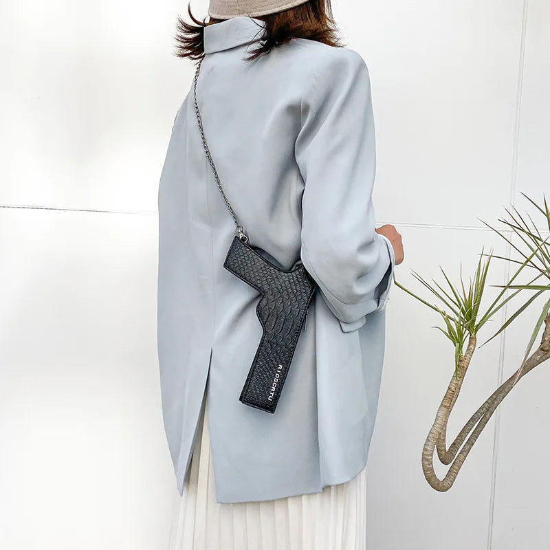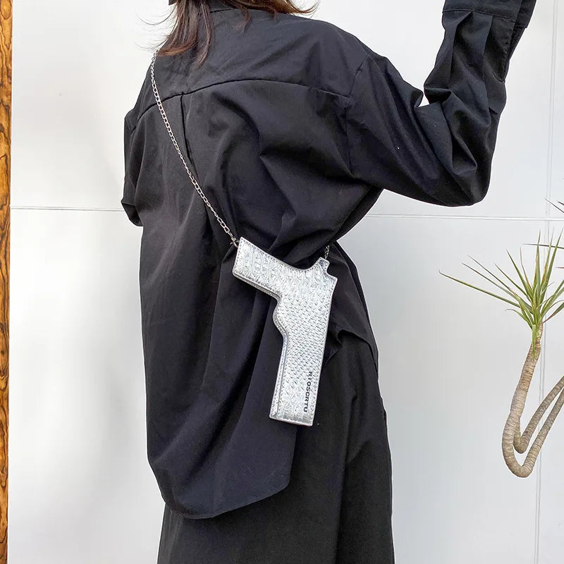 Make a bold statement with this 3D pistol gun shaped shoulder bag crafted from high-quality PU leather. Perfect for women who want to stand out and add a touch of edgy style to their outfit.