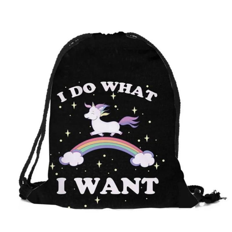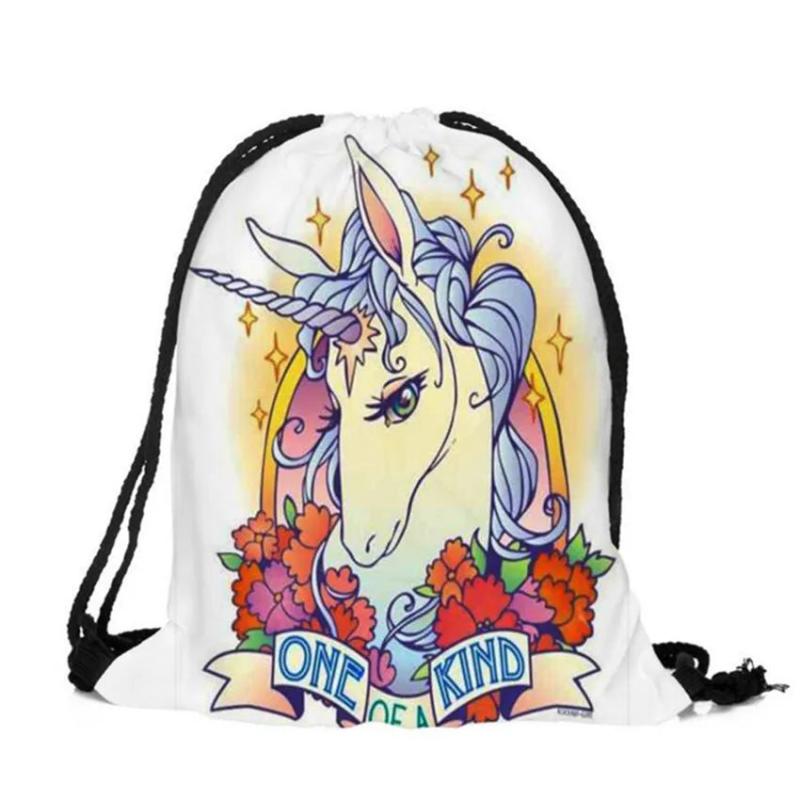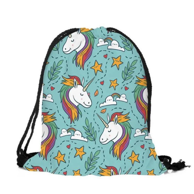 3D Print Cartoon Unicorn Drawstring Backpack Small Size