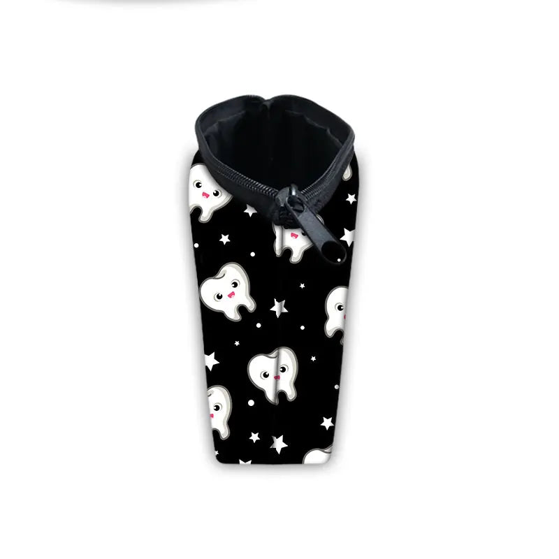 This 3D printed cosmetic bag features a unique teeth design, perfect for storing your makeup essentials. It's a travel-friendly cosmetic case that adds a touch of humor to your daily routine. Ideal for girls, this mini handbag is a fun and practical accessory.
